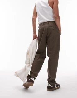 Topman Baggy Leg With Elasticated Tie Waist Jogger In Khaki For Men