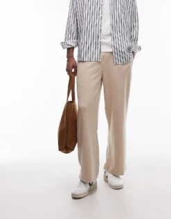 Topman Co-ord Tapered Plisse Trousers In Stone For Men Beige