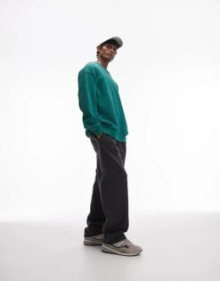 Topman Washed Oversized Sweatshirt In Green For Men Washed Green