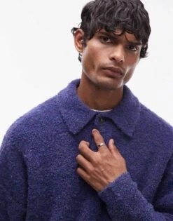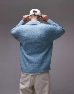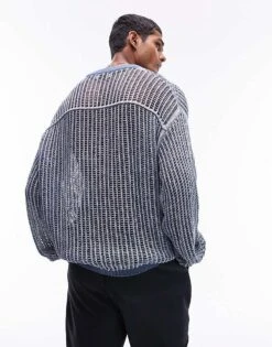 Topman Oversized Cardigan In Abstract Pattern In Blue For Men Mid Blue