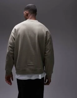 Topman Oversized Fit Linen Blend Crew Sweatshirt In Khaki For Men