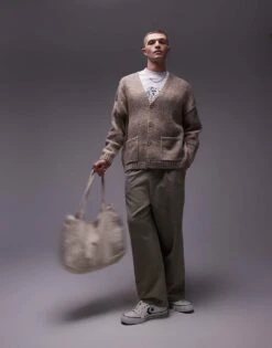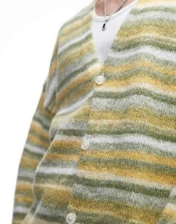 Topman Oversized Cardigan In Sage & Cream Abstract Pattern For Men Stone