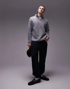 Topman Oversized Fit 1/4 Zip Funnel With Tape Detail In Black For Men