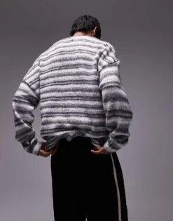 Topman Oversized Cardigan In Abstract Pattern In Grey For Men