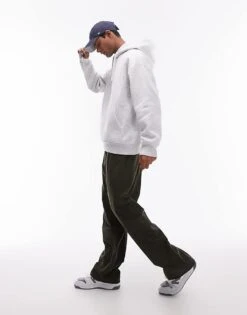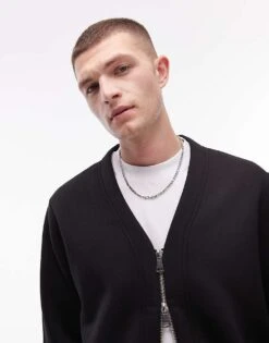 Topman Oversized Fit V Neck Zip Through In Grey Marl For Men