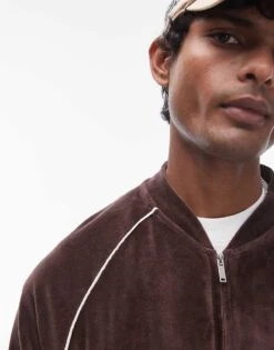 Topman Oversized Fit Velour Full Zip Through With Side Piping Detail In Brown For Men