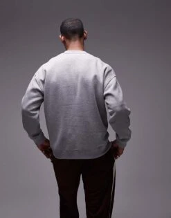 Topman Oversized Fit Sweatshirt With Front And Back Tokyo Textured Print In Grey Marl For Men