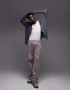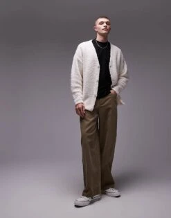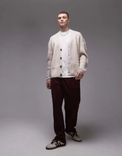 Topman Premium Lambswool Ribbed Cardigan In Stone For Men Beige