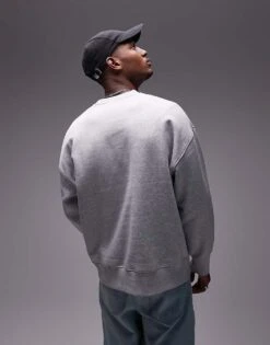 Topman Premium Heavyweight Oversized Sweatshirt In Grey Marl For Men