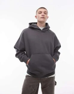 Topman Premium Heavyweight Oversized Hoodie In Charcoal For Men