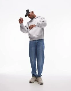 Topman Premium Heavyweight Oversized Hoodie In Grey Marl For Men