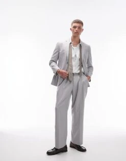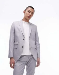Topman Slim Linen Blend Suit Jacket In Grey For Men Light Grey