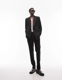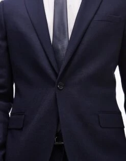 Topman Stretch Super Skinny Textured Suit Jacket In Navy For Men