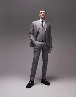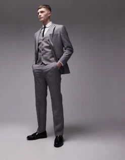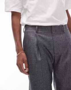Topman Wide Leg Linen Blend Suit Trouser In Grey For Men Light Grey