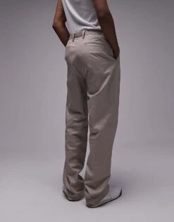 Topman Straight Linen Blend Co-ord Trousers In Stone For Men