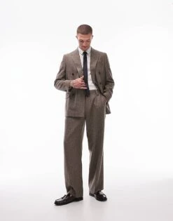 Topman Slim Double Breasted Suit Jacket In Light Khaki For Men