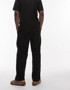 Topman Straight Linen Blend Co-ord Trousers In Stone For Men