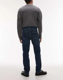 Topman Stretch Slim Jean In Dark Wash Blue For Men Mid Wash Blue