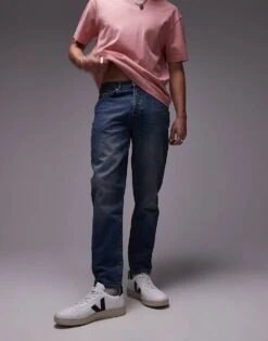 Topman Taper Jeans In Light Wash Green Tint For Men Light Blue