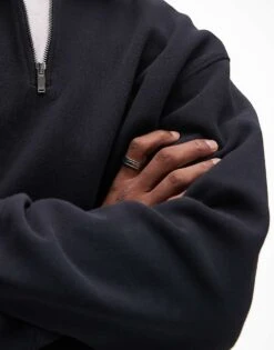 Topman Washed 1/4 Zip Sweatshirt In Black For Men Washed Black