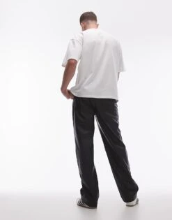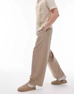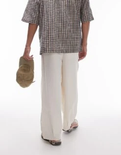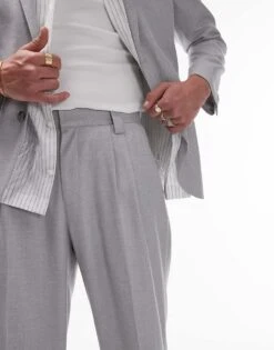 Topman Wide Leg Linen Blend Suit Trouser In Grey For Men Light Grey