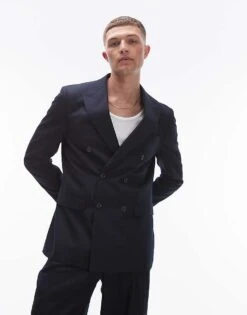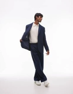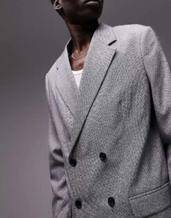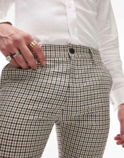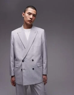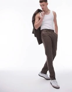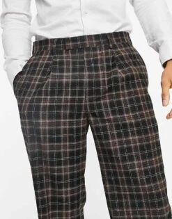 Topman Premium Wide Leg Wool Mix Striped Herringbone Suit Trouser In Brown For Men Grey