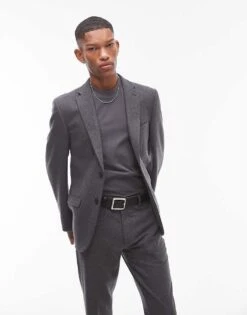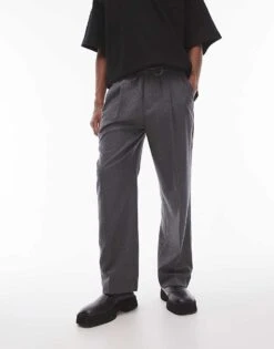 Topman Premium Wool Mix Wide Leg Trousers In Charcoal For Men