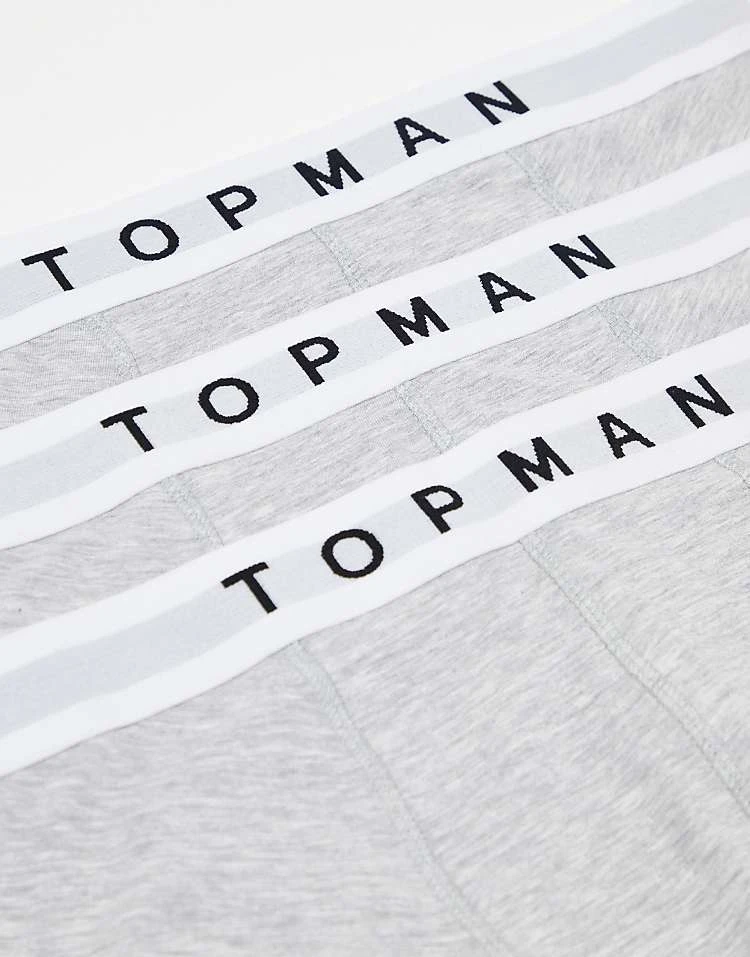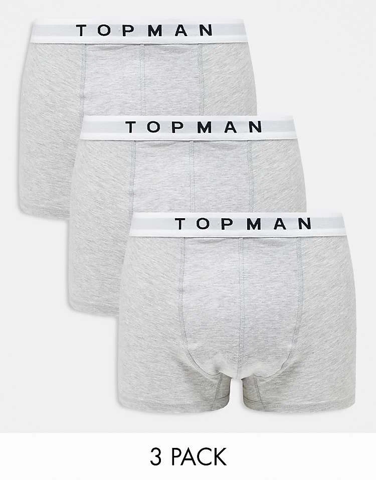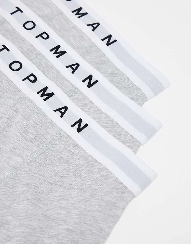 Topman 3 Pack Trunks In Grey Marl With White Waistbands For Men Multi
