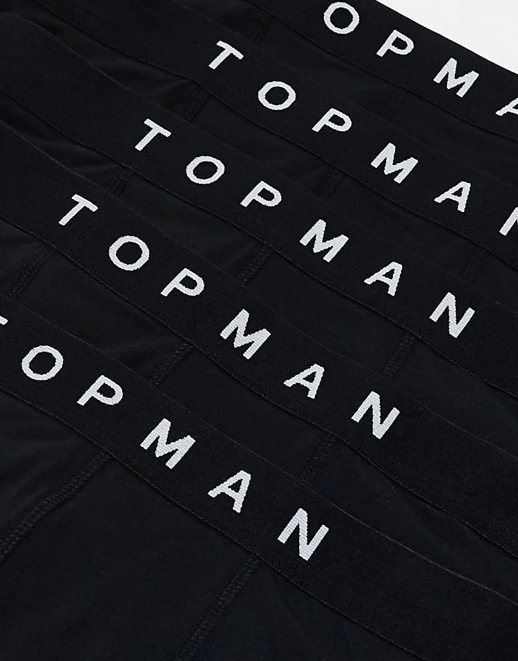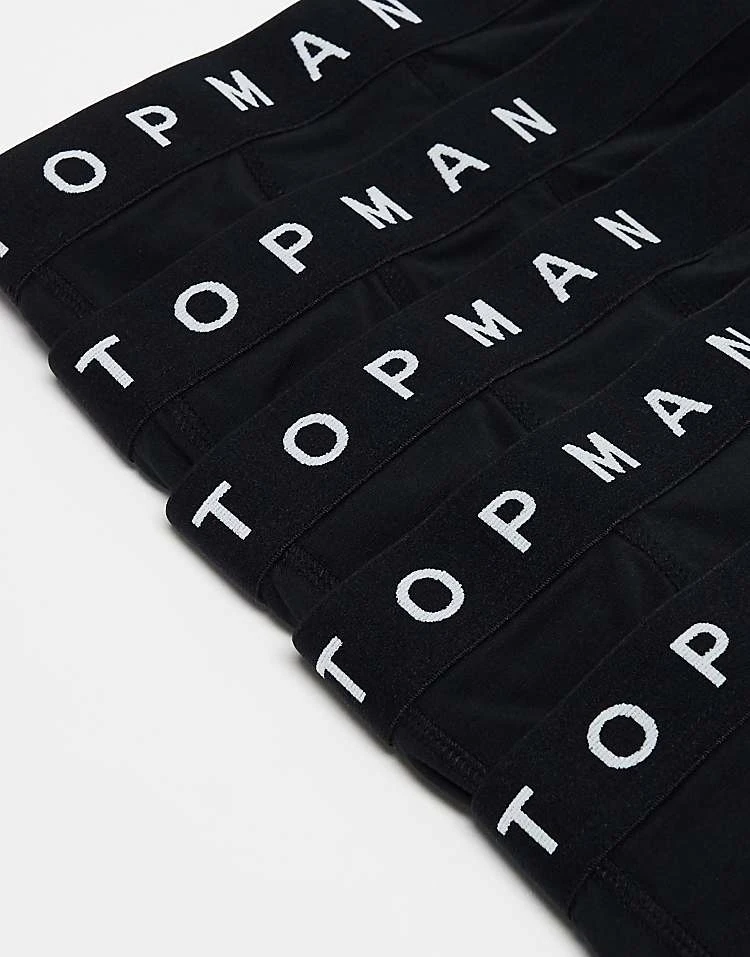 Topman 5 Pack Trunks In Black With Black Waistbands For Men Multi