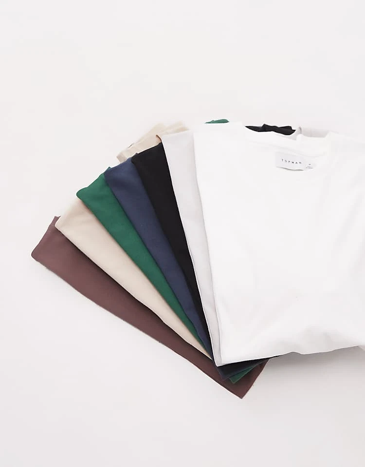 Topman 7 Pack Regular T-shirt In Black, White, Stone, Brown, Charcoal, Navy And Green For Men Multi