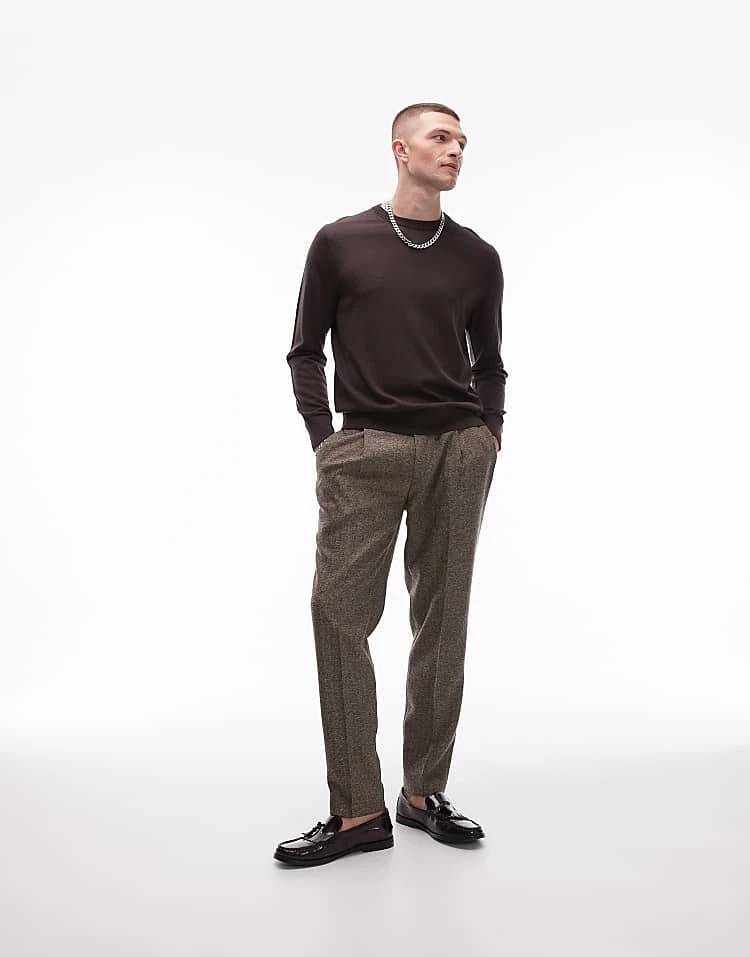 Topman Herringbone Suit In Brown