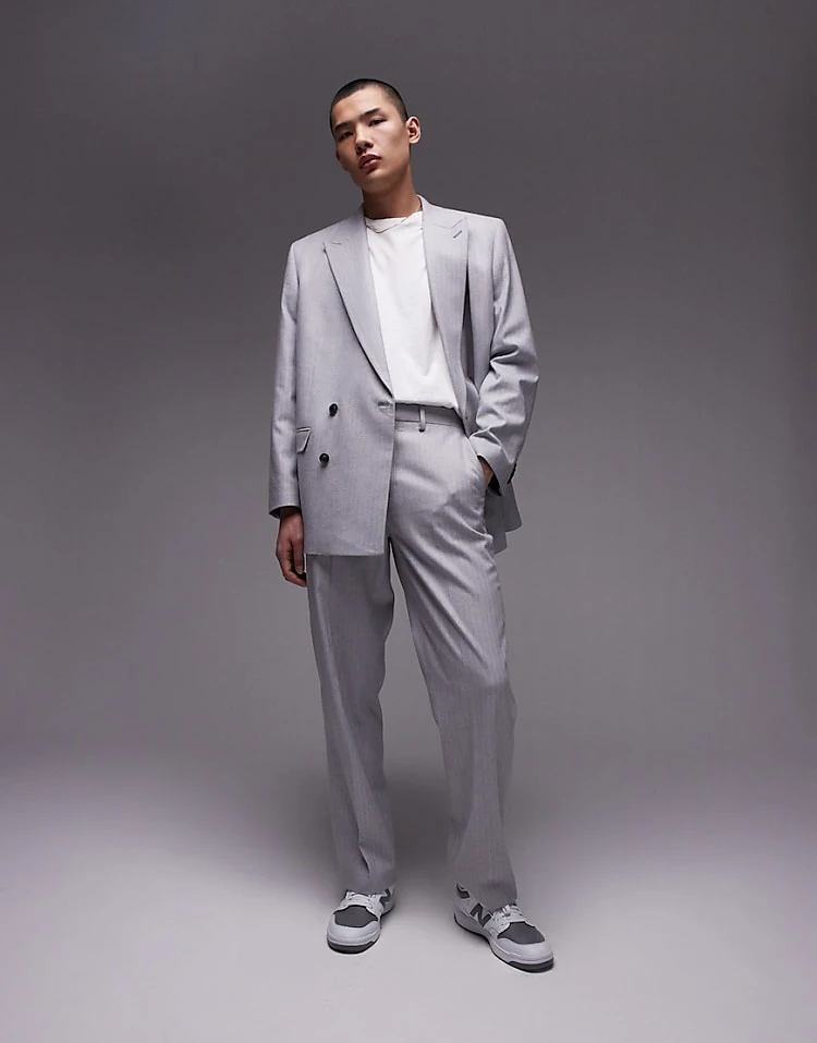 Topman Herringbone Suit Jacket And Trouser In Grey