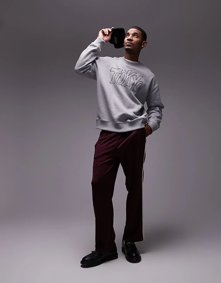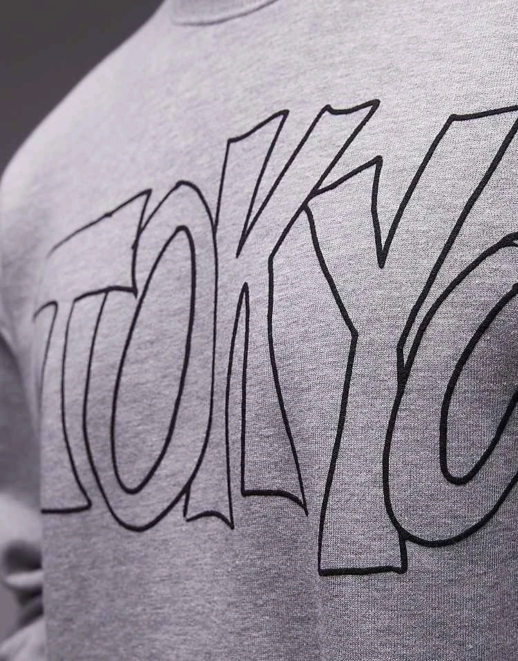 Topman Oversized Fit Sweatshirt With Front And Back Tokyo Textured Print In Grey Marl For Men