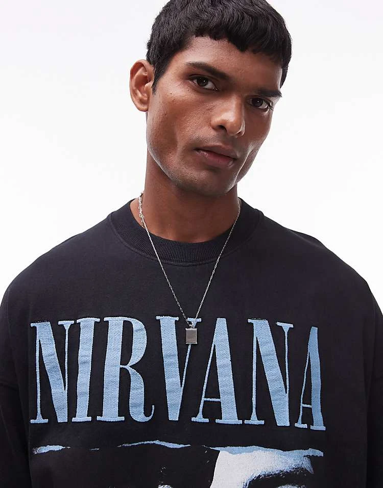 Topman Oversized Fit T-shirt With Nirvana Print In Washed Black For Men
