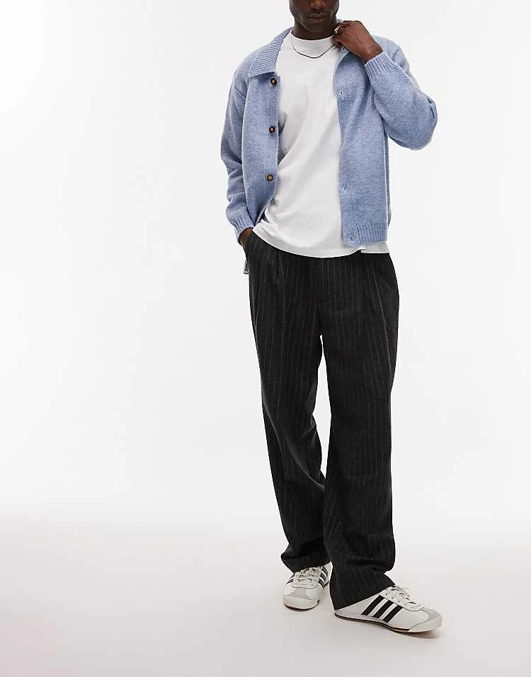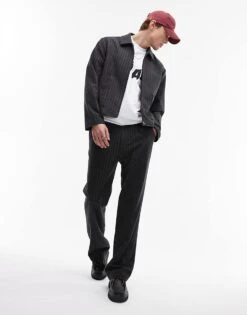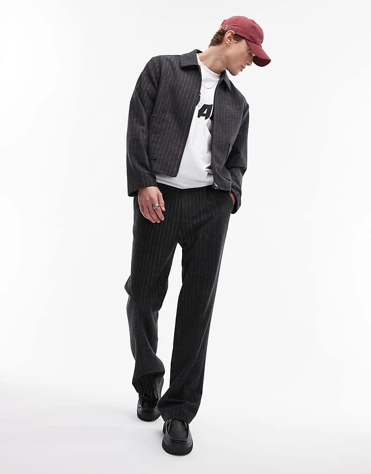 Topman Premium Pinstripe Wool Blend In Charcoal