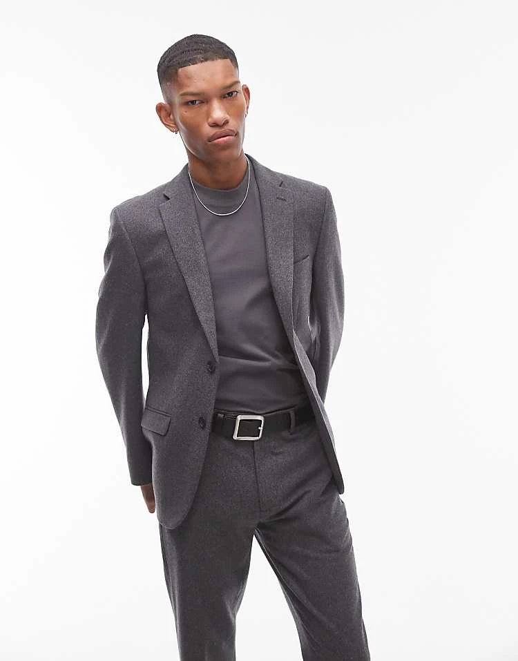 Topman Premium Slim Wool Mix Suit In Charcoal