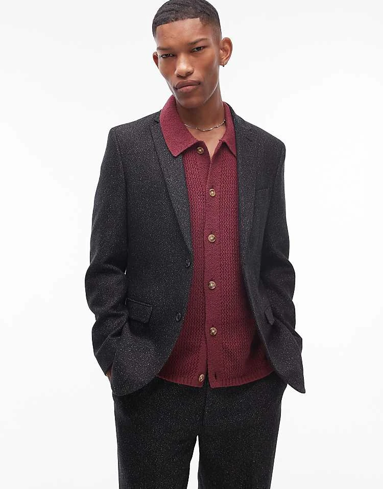Topman Salt And Pepper Suit With Overcoat In Black