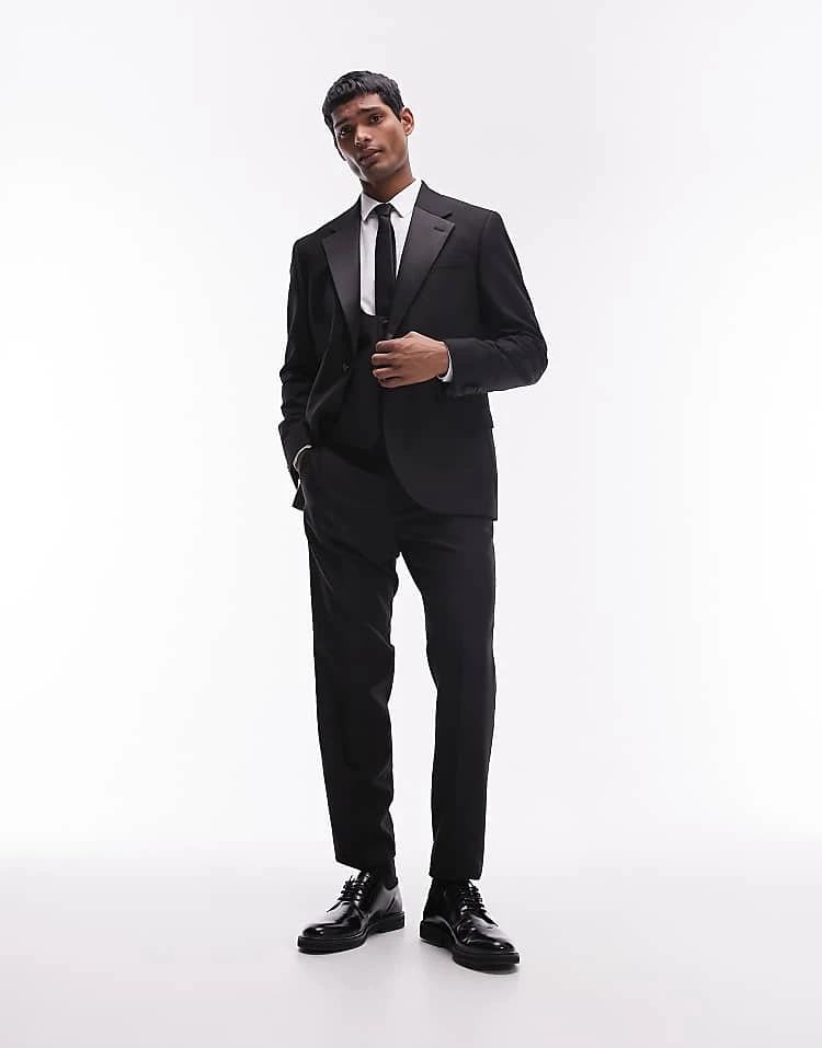 Topman Slim Tuxedo Suit In Black