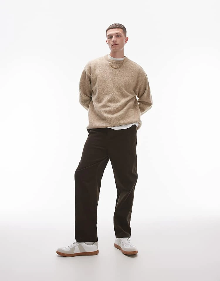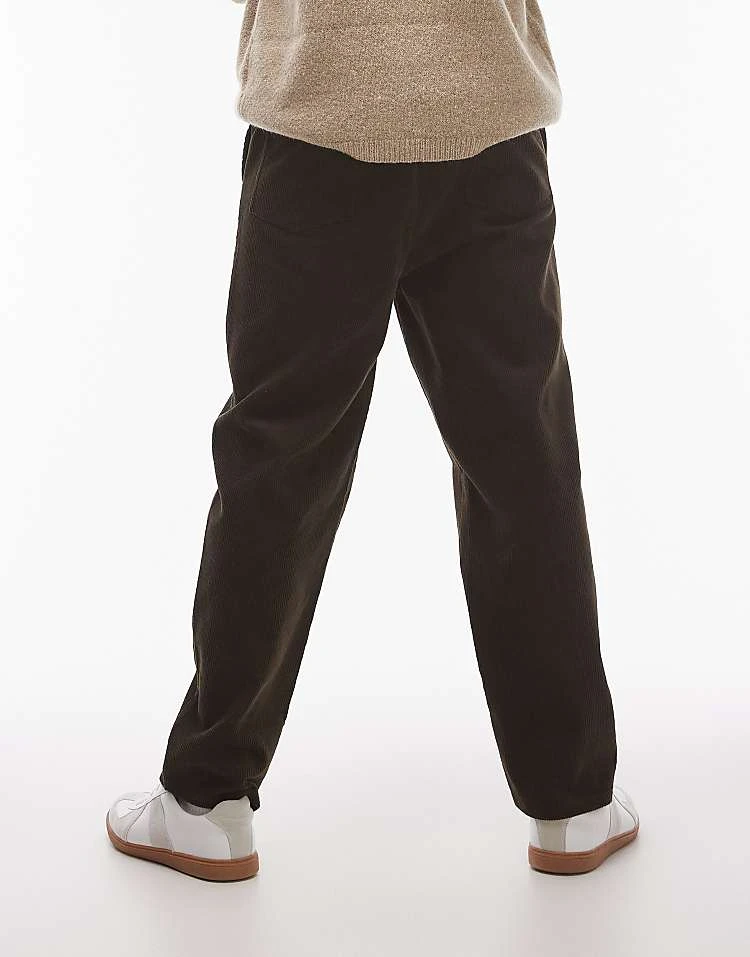 Topman Tapered Cord Trousers In Brown For Men