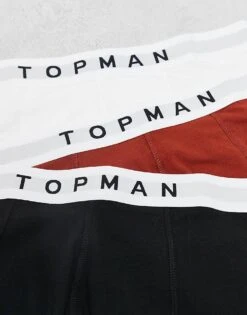 Topman 3 Pack Trunks In Black With White Waistbands For Men Multi